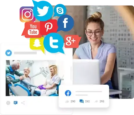 An image representing social media marketing strategies, featuring social media icons and promotional content to engage and connect with audiences on social platforms.
